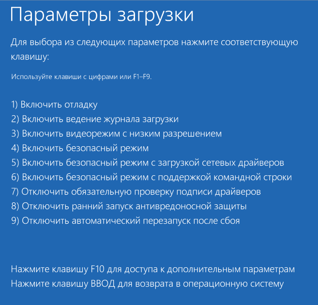 - В меню "Параметры загрузки", среди дополнительных вариантов загрузки выберите Безопасный режим.