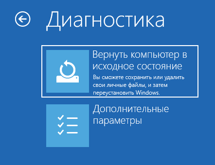 - В меню Диагностика перейдите в Дополнительные параметры.