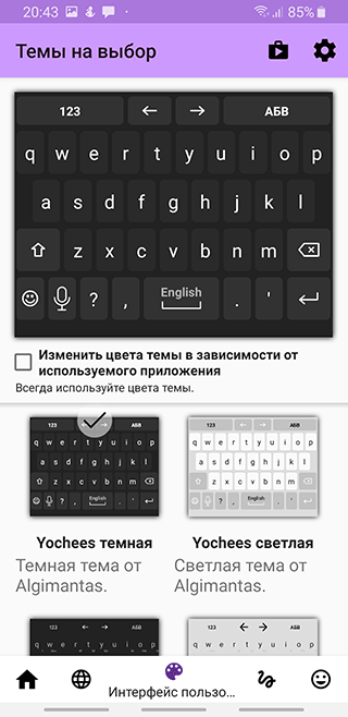 Понятное дело, темы оформления для клавиатуры и смайлики здесь присутствуют в полном объеме.
