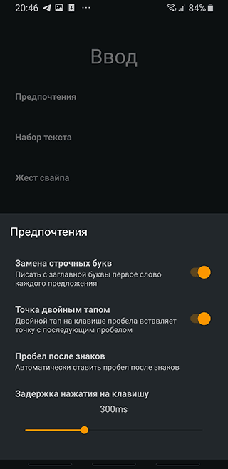 - Альтернативный ввод текста - жестами и скольжением по раскладке. Можно использовать мультитач и голосовой ввод текста.