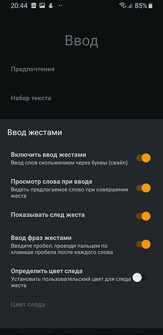 | жесты и горячие клавиши | + SwiftKey Flow | + ( набор скольжением и жесты) | + (скользящий метод ввода) | + | + (скользящий набор) |