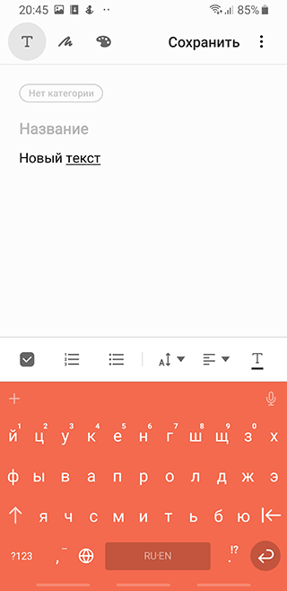 - Свайп-ввод текста - не нужно нажимать на каждую клавишу, можно вводить буквы, скользя по клавиатуре.