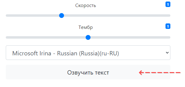 - Нажмите на кнопку Озвучить текст.