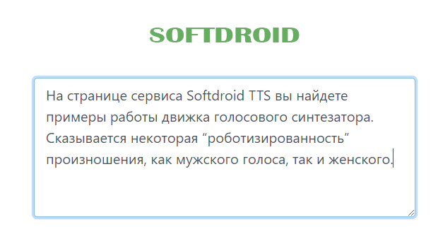 Данный онлайн-синтезатор не отличается каким-то навороченным интерфейсом, однако вы здесь найдете искомую функцию озвучки текста роботом.